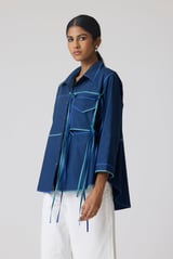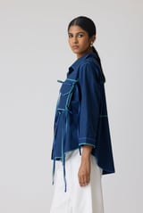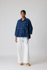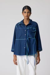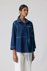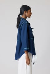 Midnight Navy Relaxed-Fit Poplin Shirt with Overlock Detail
