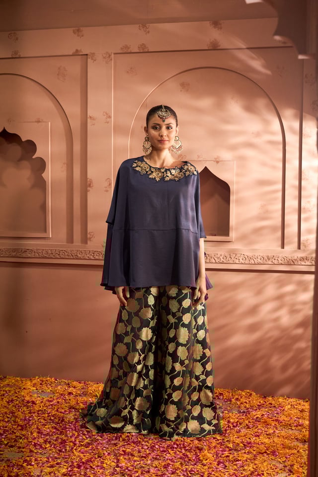 Kiri Embroidered Kaftan with Banarasi Lotus Flared Pant