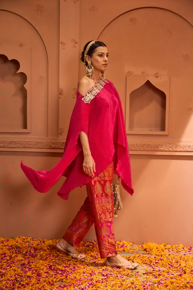 Divine Embroidered Cape Set with Banarasi Flared Pant