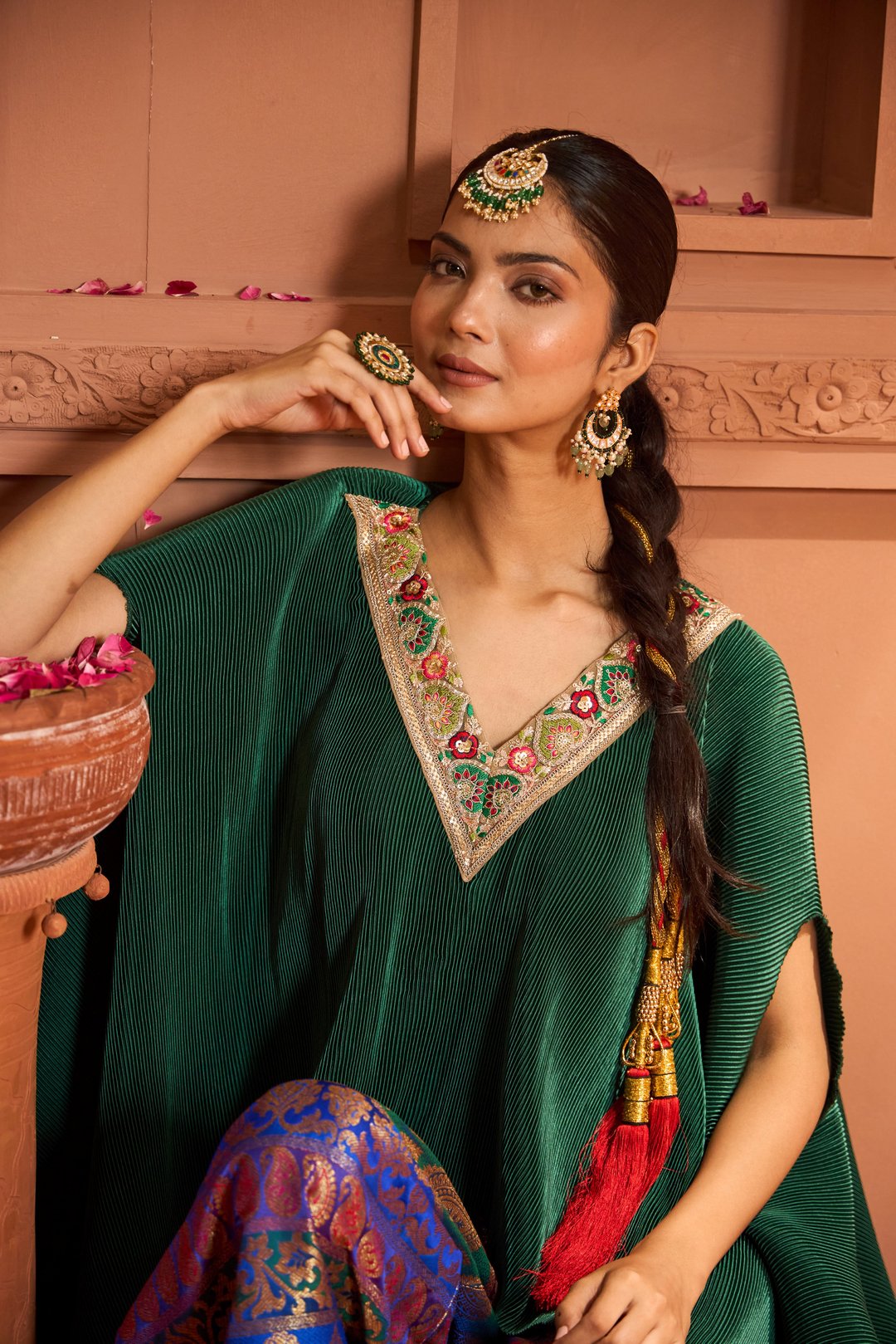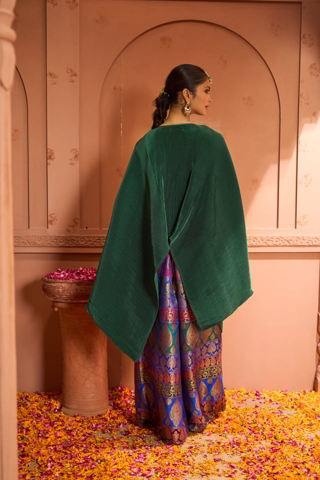 Divine V-Neck Embroidered Cape Set with Brocade Pant
