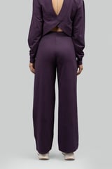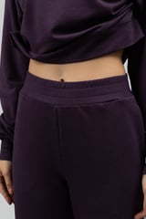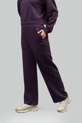 Plum Cotton Terry Wide-Leg Trackpants