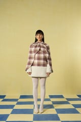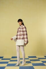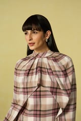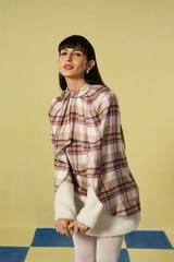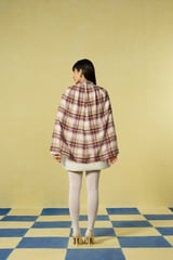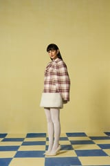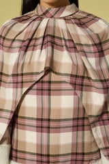 Mauve Check Cape Overlay Mini Dress with Fleece Trim