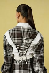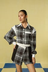 Black/Grey/White Plaid Shirt and Wrap Mini Skirt Co-ord Set