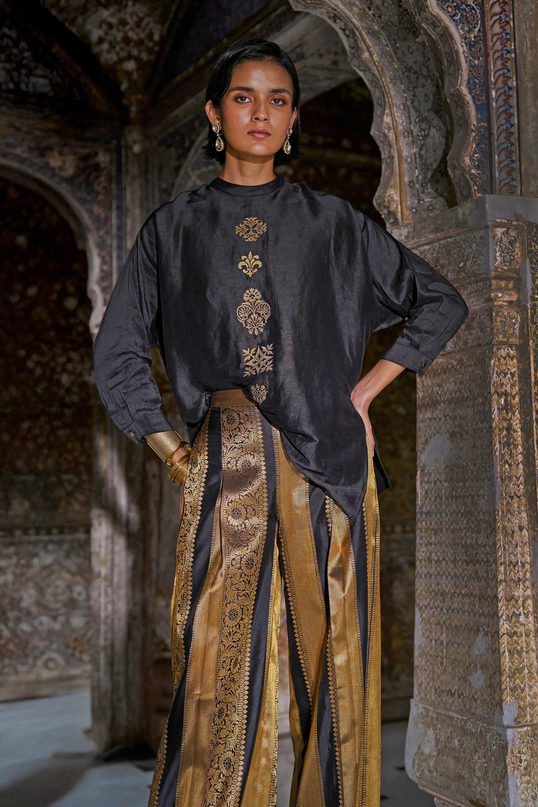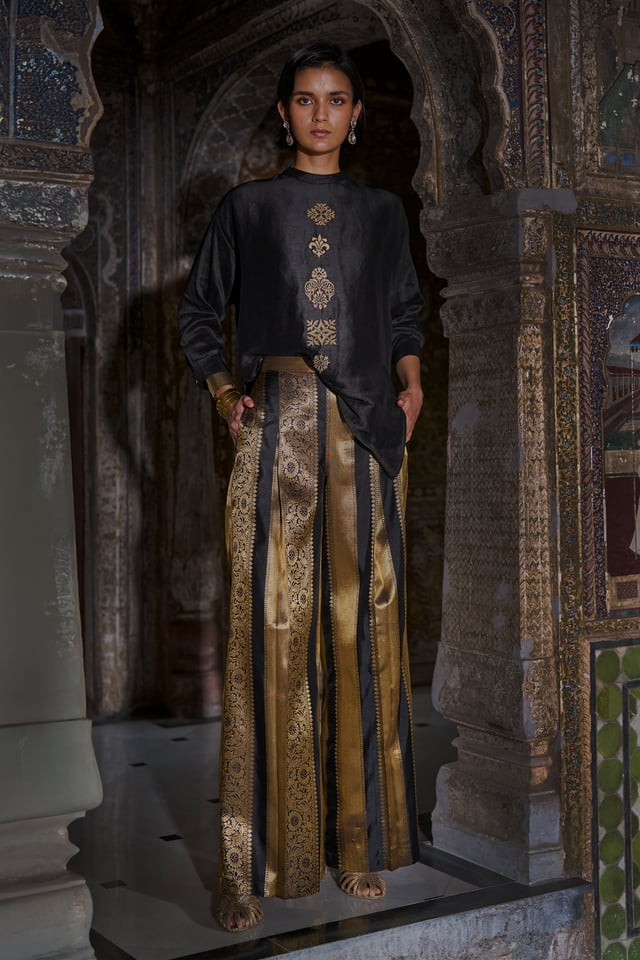 Embroidered Motif Boxy Shirt Black/Gold