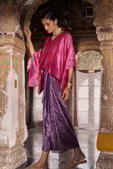Benares Tissue Stripe Kaftan Top & Stripe Drape Skirt Set