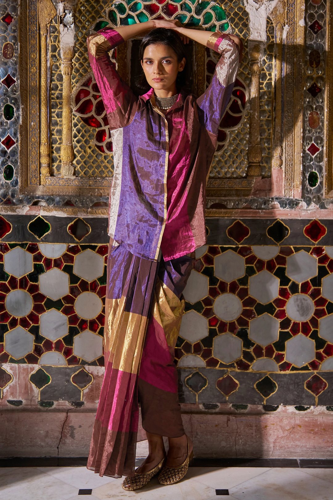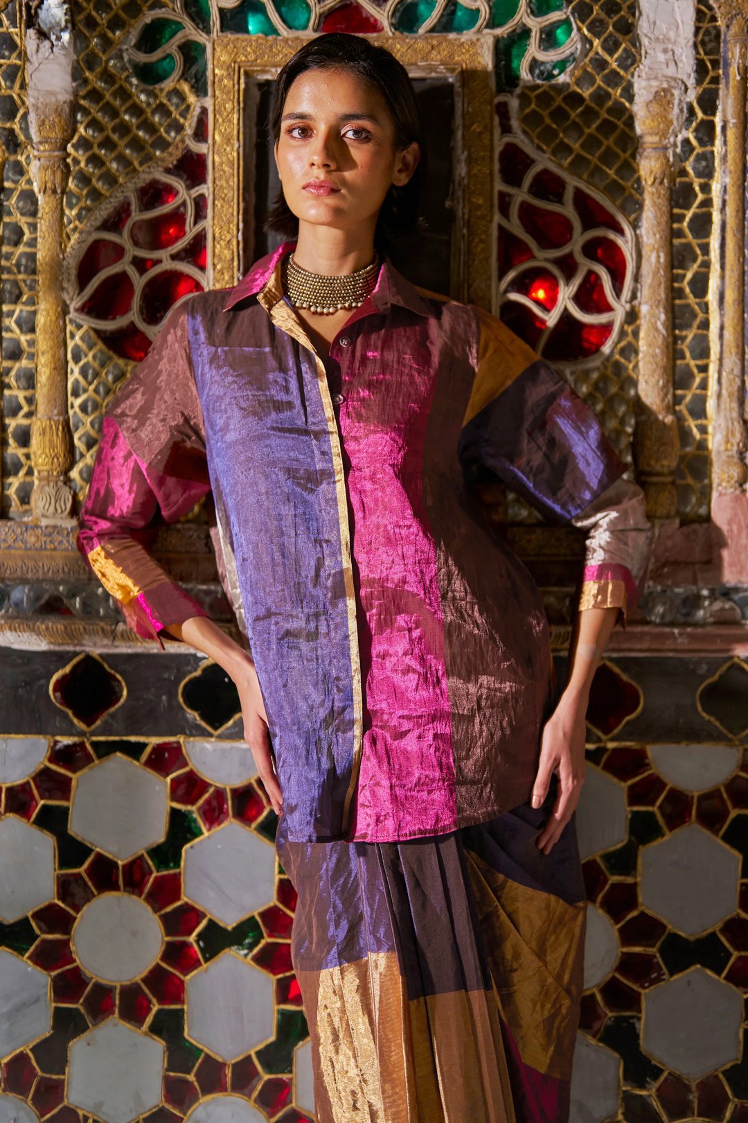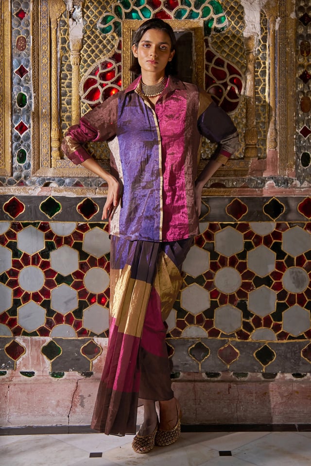 Striped Benares Tissue Skirt Set