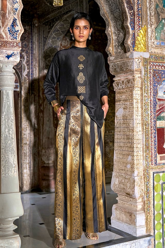 Embroidered Motif Boxy Shirt & Benares Brocade Striped Pant