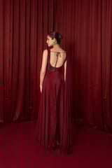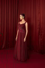 Maroon Chiffon Maxi Gown with Sweetheart Neckline