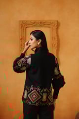 Black Embroidered Jacket and Wide-Leg Co-ord Set