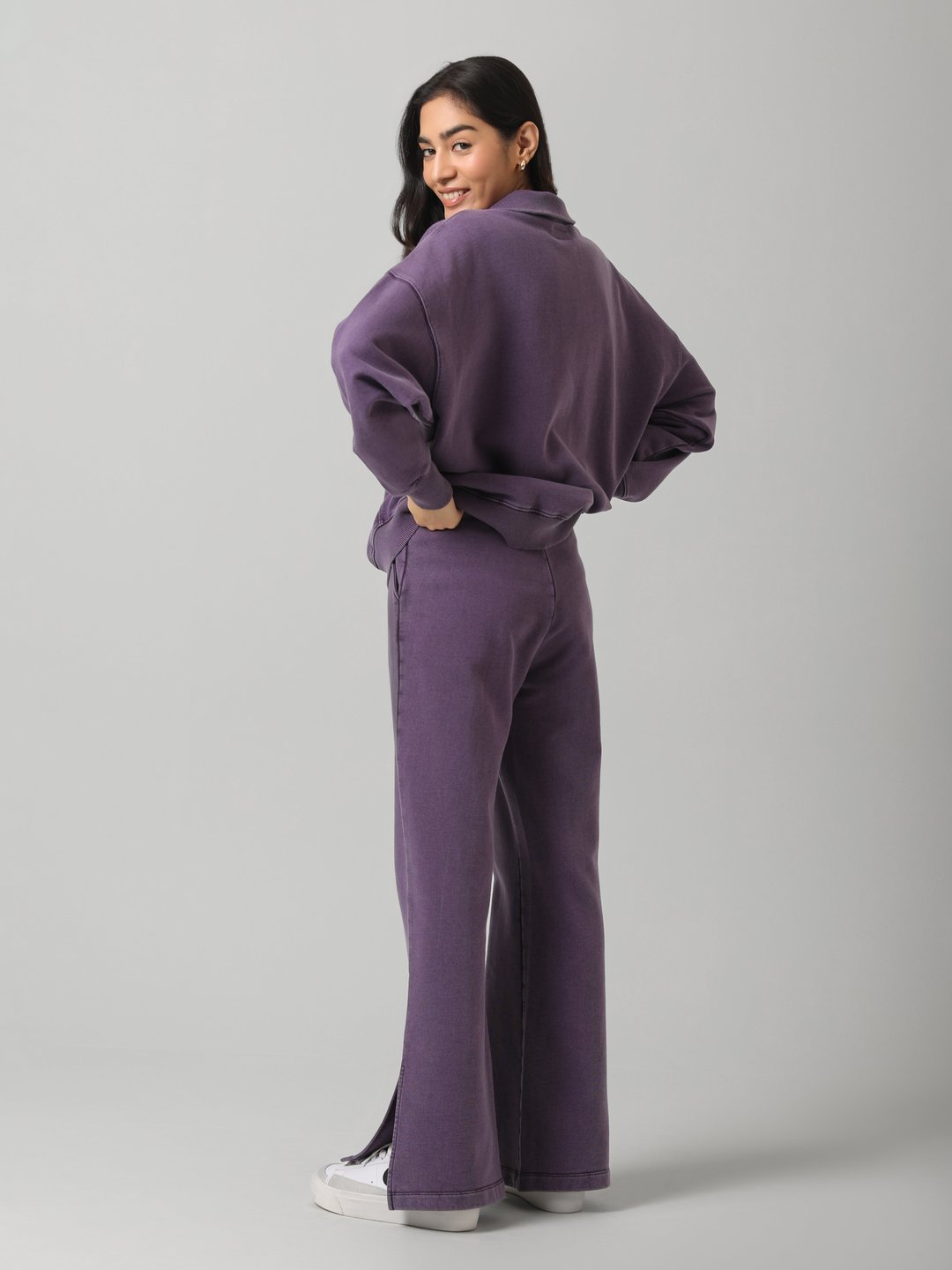 Plum Cotton Terry Acid Wash Side Slit Pant