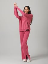 Red Cotton Terry Acid Wash Wide-Leg Trackpants