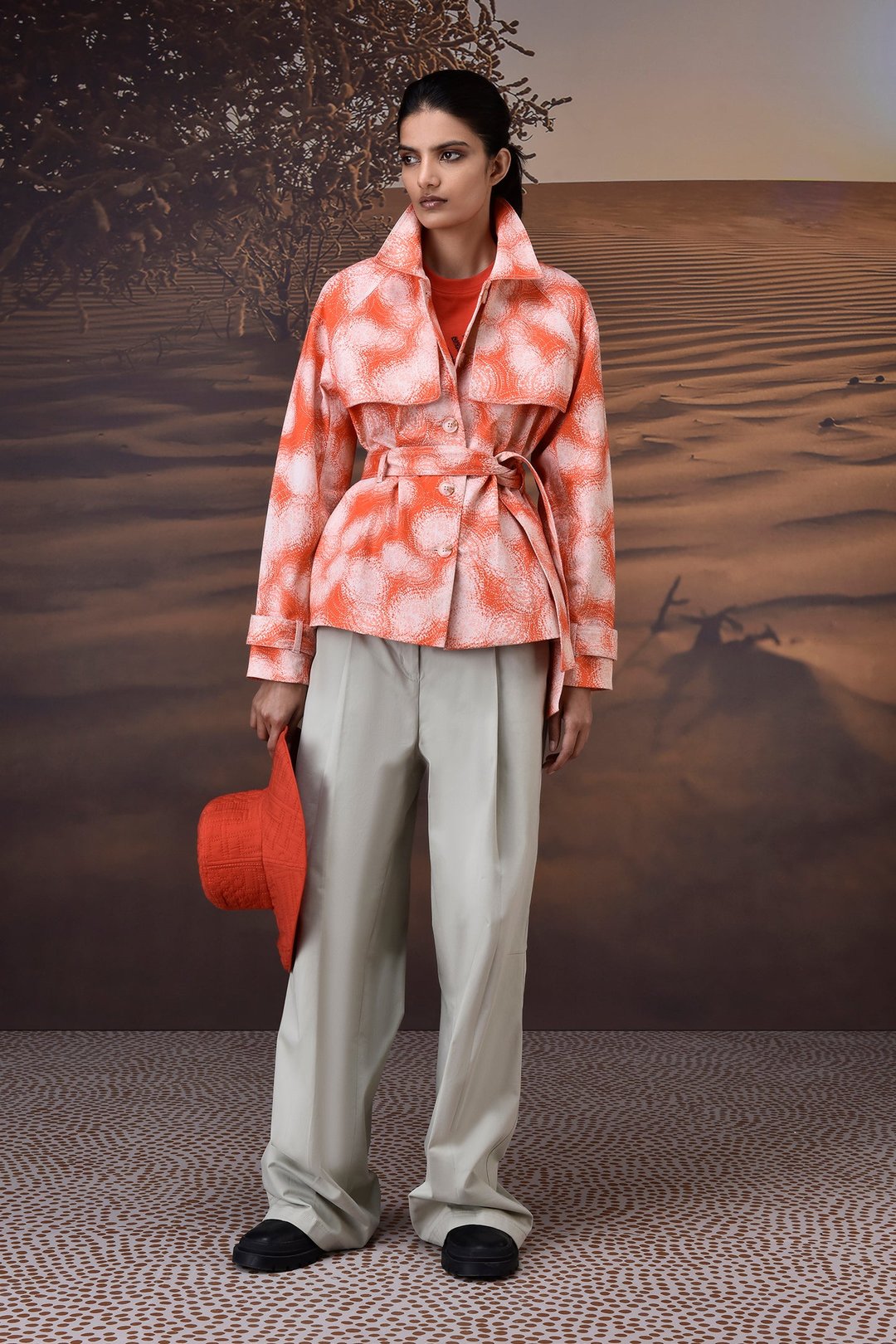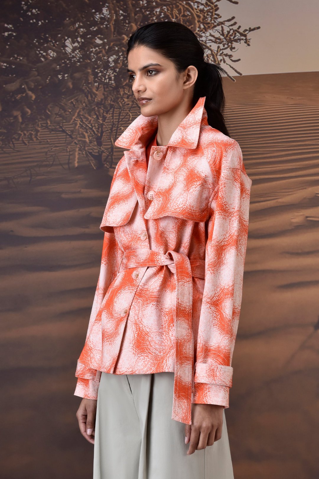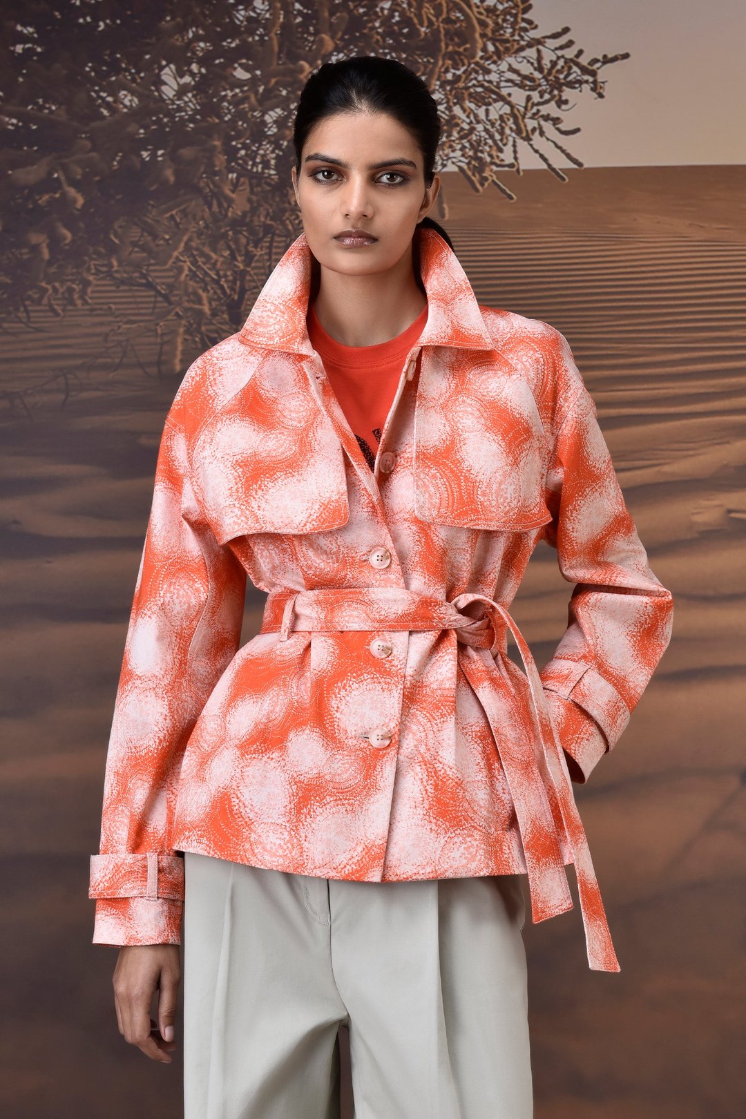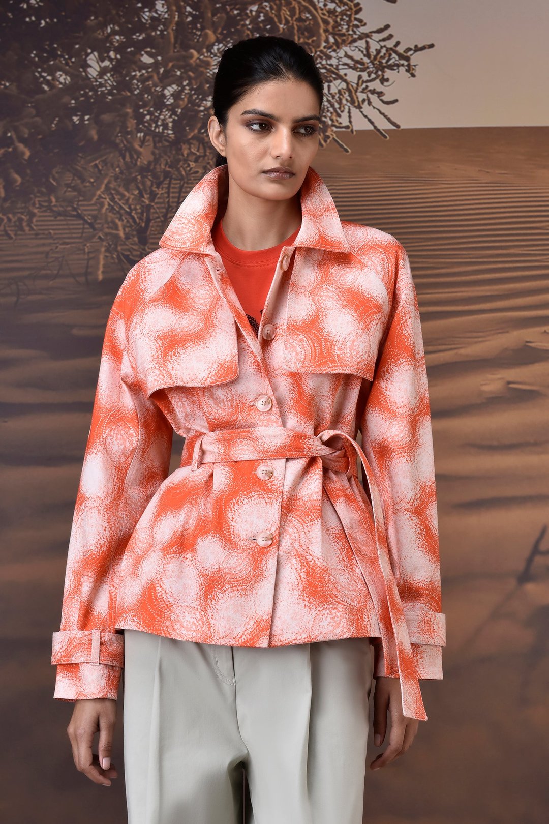 Coquelicot Abstract Circle Print Cotton Twill Jacket