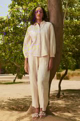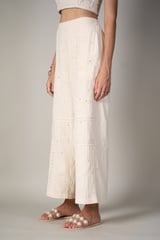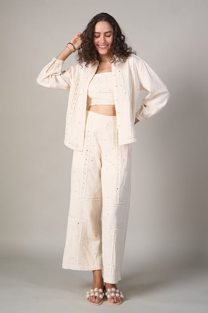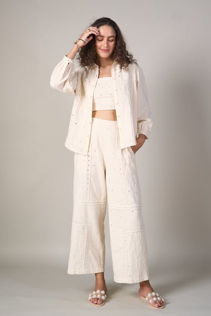 White High-Waist Wide-Leg Mirror Work Pants