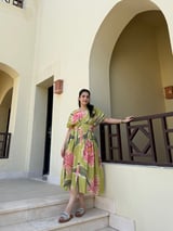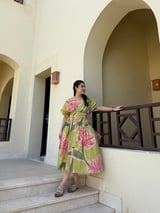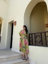 Olive Pink Floral Cotton Poplin Belted Midi Dress