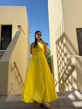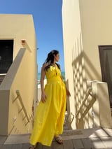 Sunshine Yellow Halter Tie-Up Fit and Flare Maxi Dress