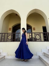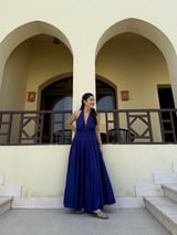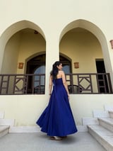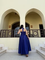 Ultramarine Blue Halter Neck Fit and Flare Maxi Dress