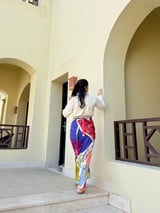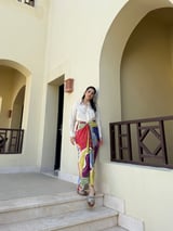 Multicolor Printed Shirt and Drape Maxi Skirt Co-ord Set