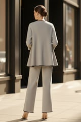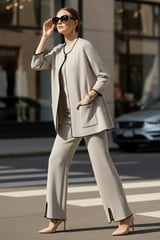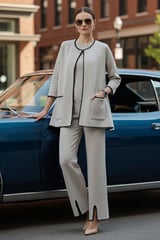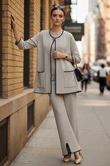 Beige Wool Knit Co-ord Set with Contrast Trim