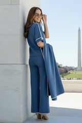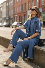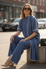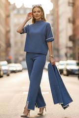 Cobalt Blue Wool Knit 3-Piece Co-ord Set with Shawl