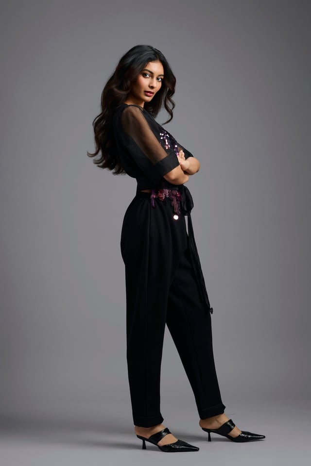 Sequin Jumpsuit with Sheer Sleeves