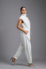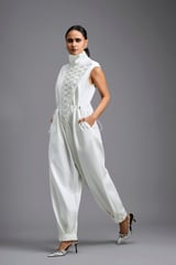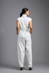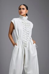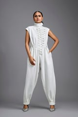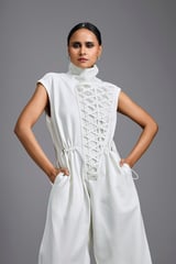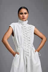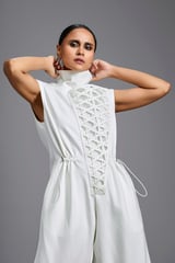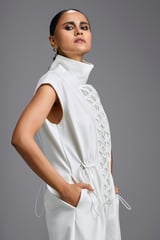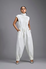 Jumpsuit with Woven Leather Panel