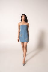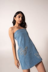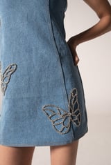 Off-shoulder denim mini with butterflies