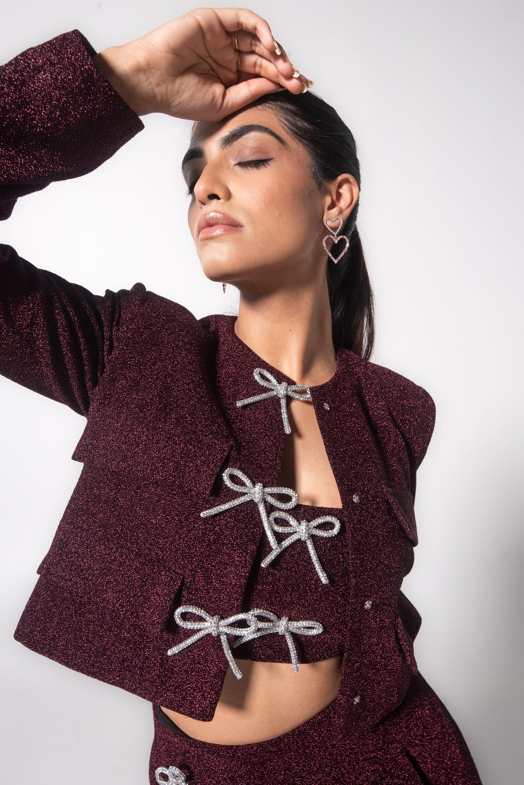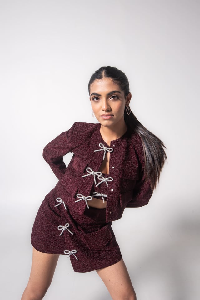 Full-Sleeved Glitter Jacket with Shiny Bows