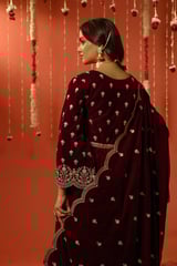 Maroon Velvet Anarkali Kurta Set with Zari and Sequins