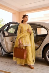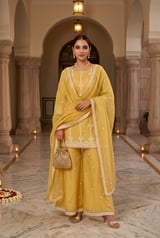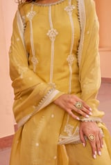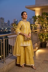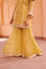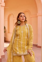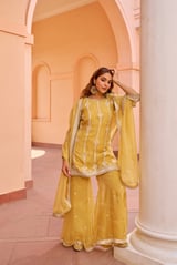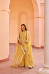Yellow Organza Embroidered Kurta Sharara Set with Dupatta