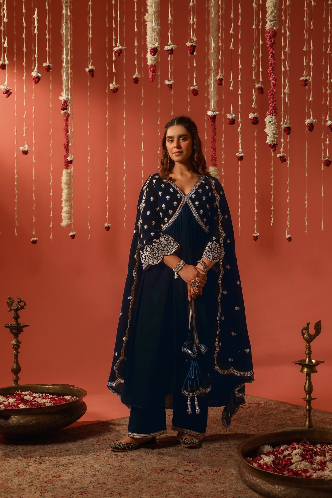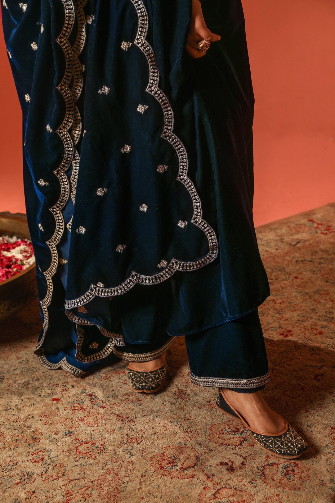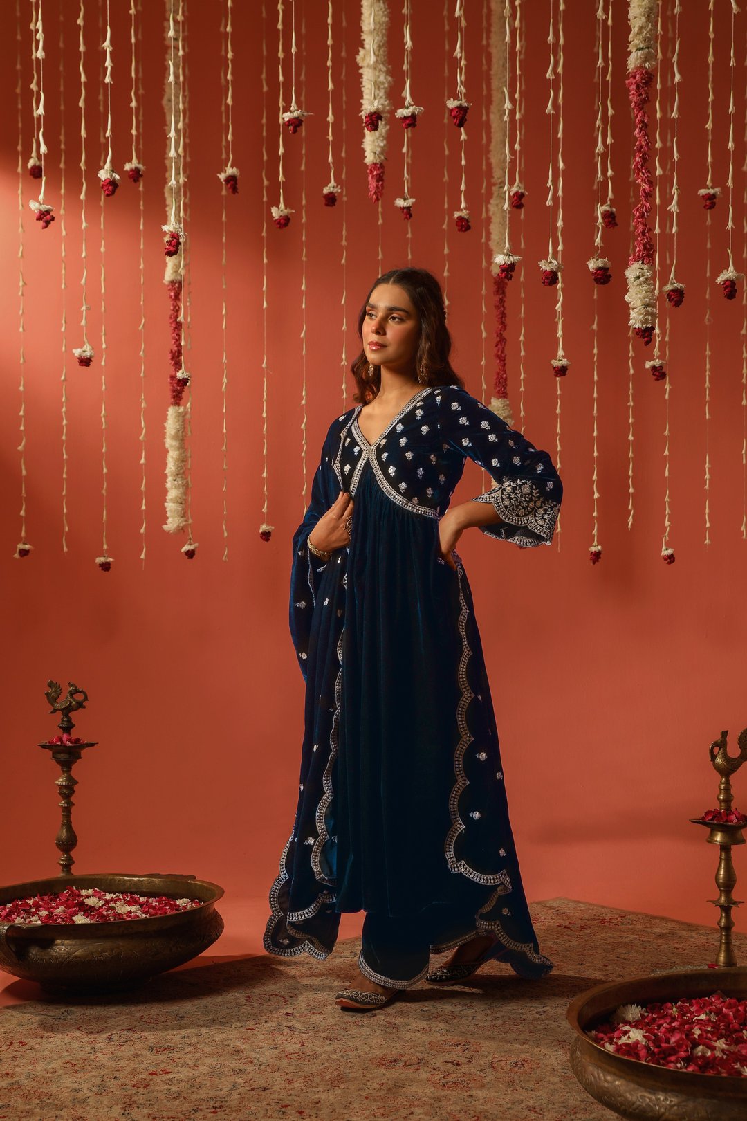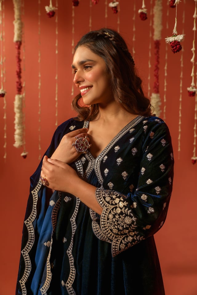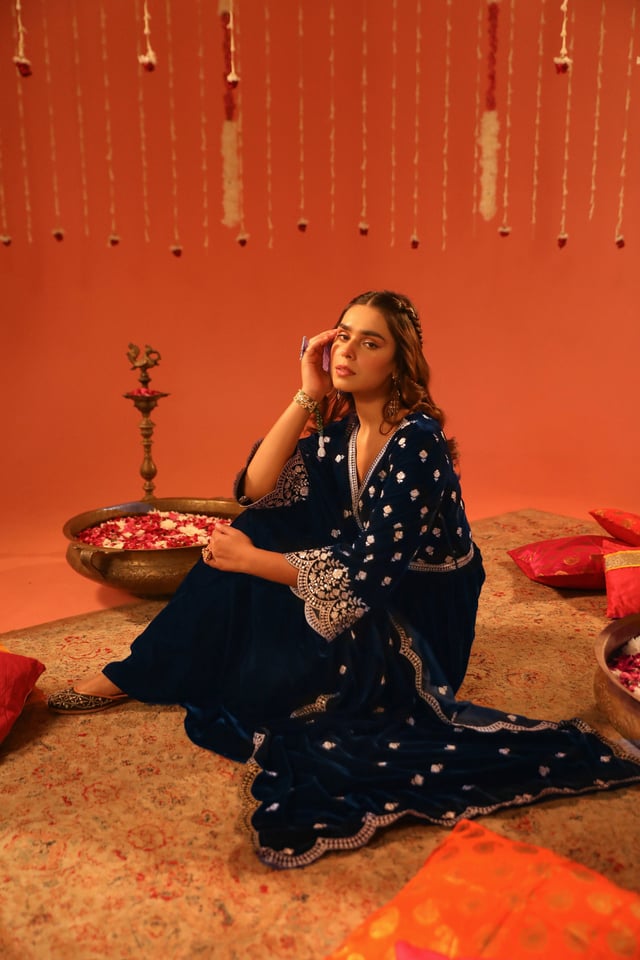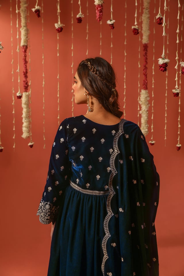 Sur - Velvet Blue Anarkali Set