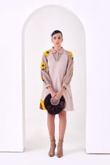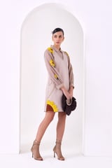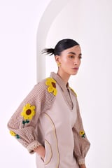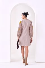 Beige A-Line Mini Dress with Sunflower Embroidery