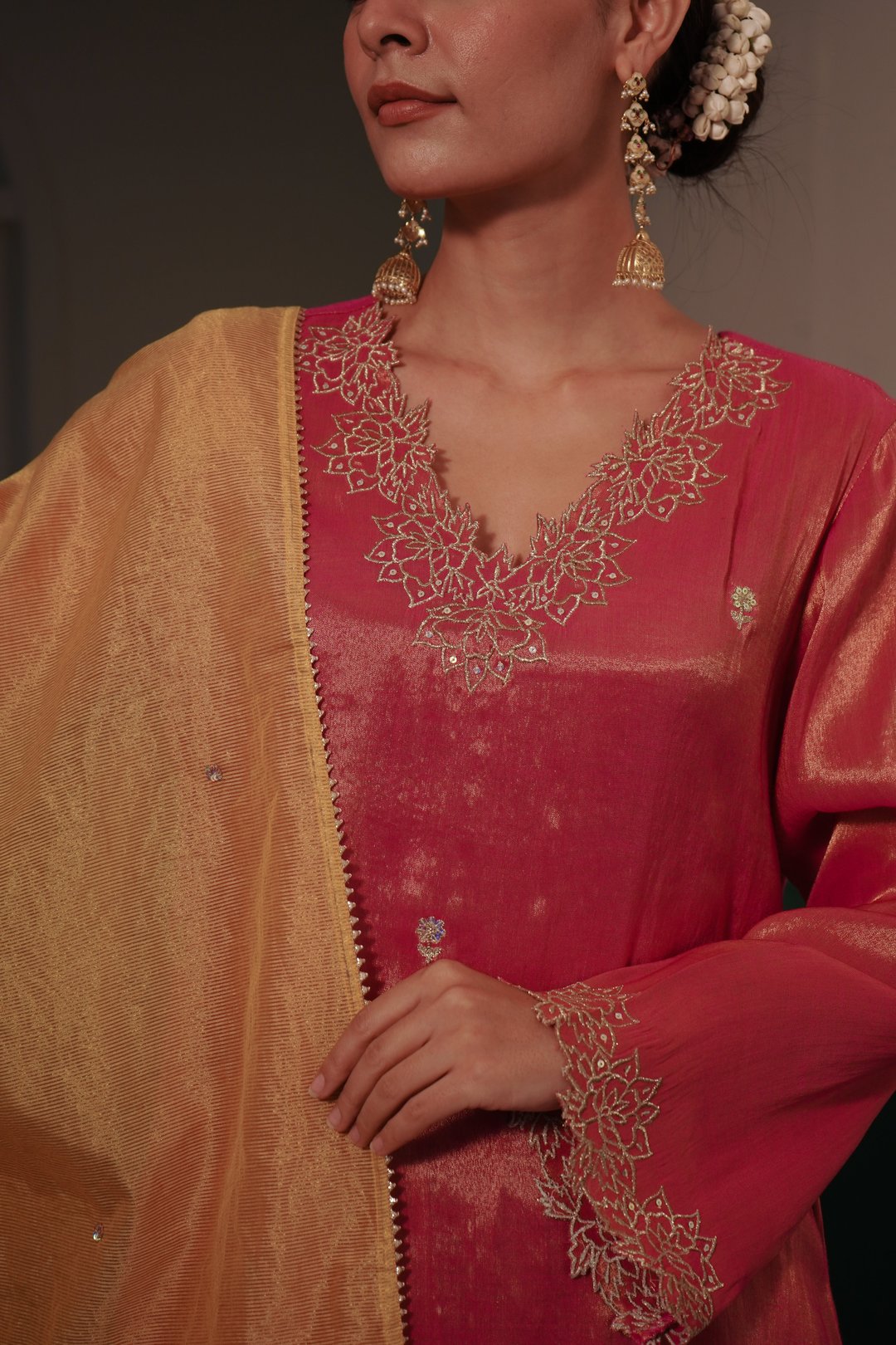 Peony Zari Kurta with Wide Leg Pants