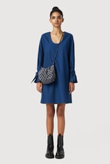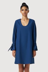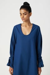 Round Neck Dress with Tie-Up Straps on Sleeves