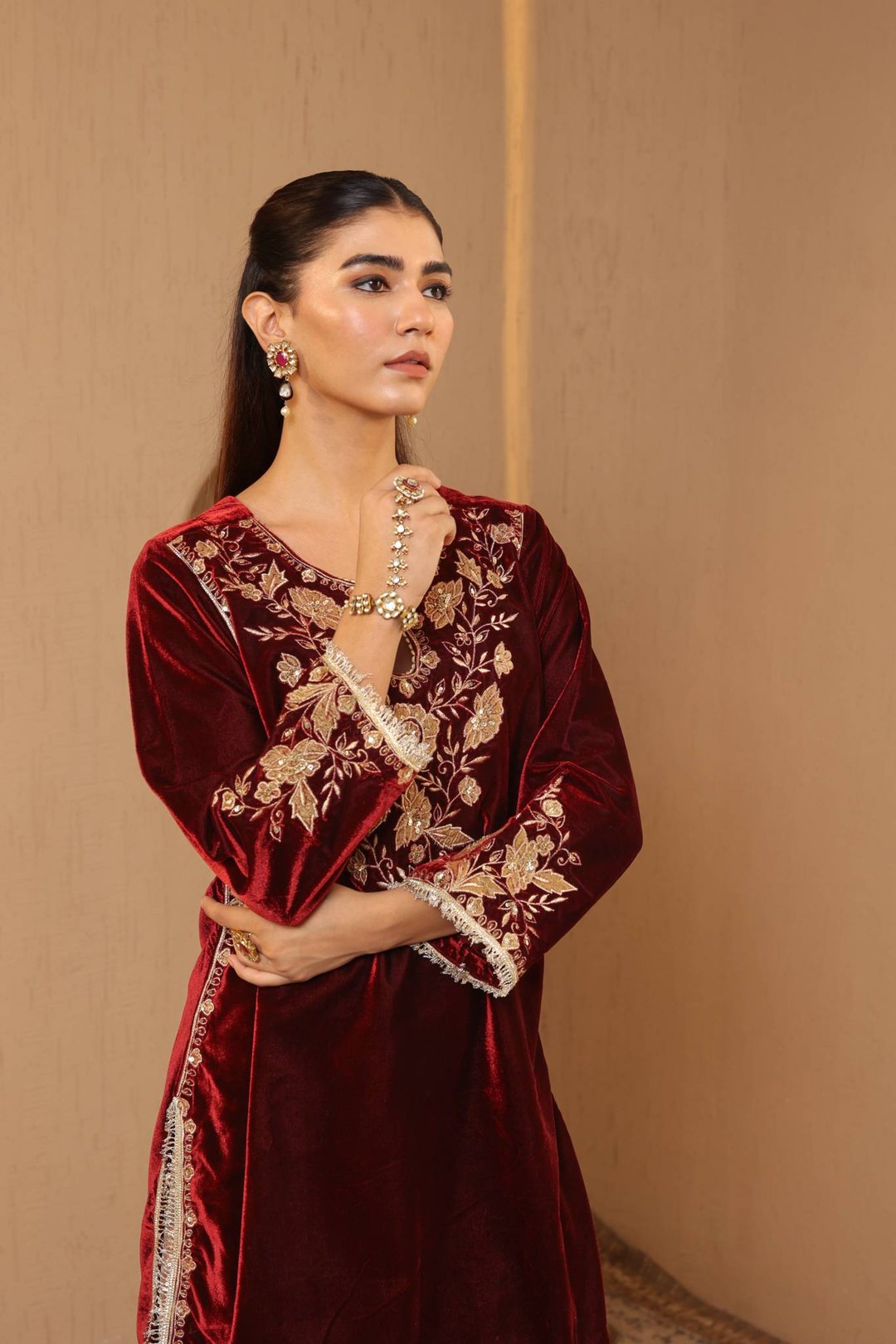 Floral Zari Velvet Kurta with Sharara