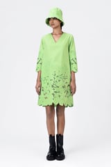 Dress with Tropical Cutout Embroidery - Mint