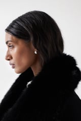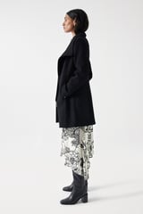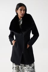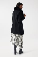 Black Wool-Blend Tailored Coat with Detachable Fur Collar