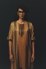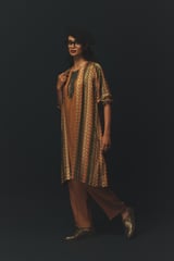Beige Printed Longline Layer Co-ord Set with Tapered Pants