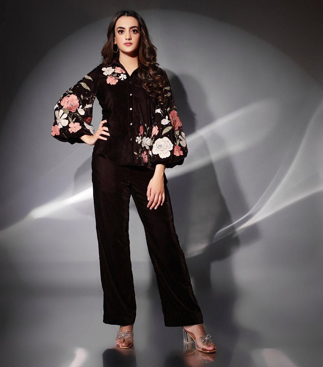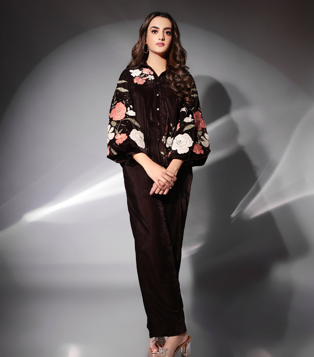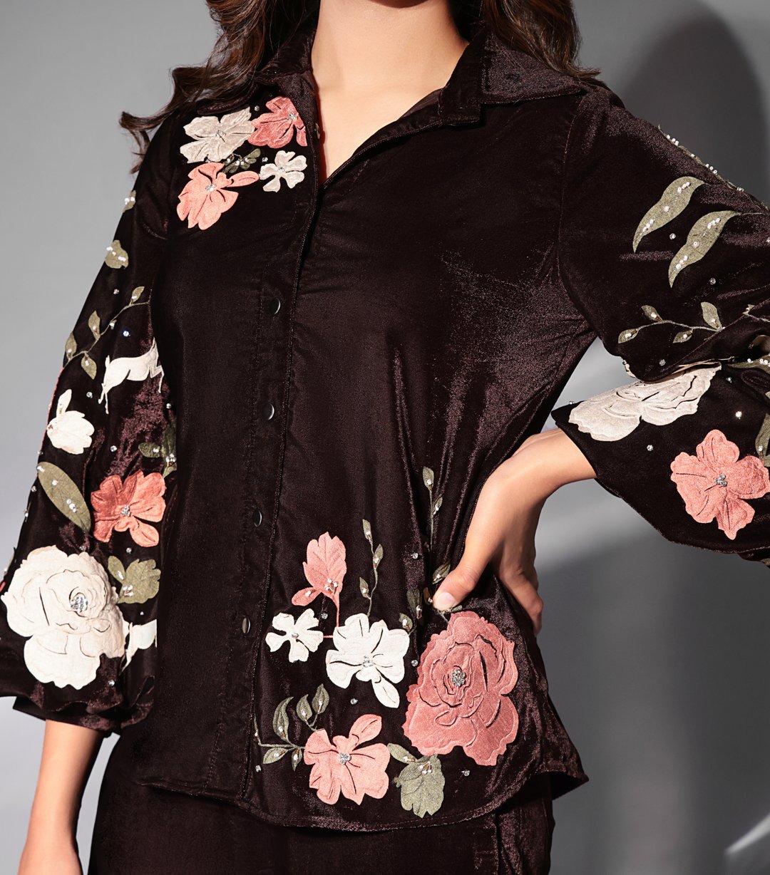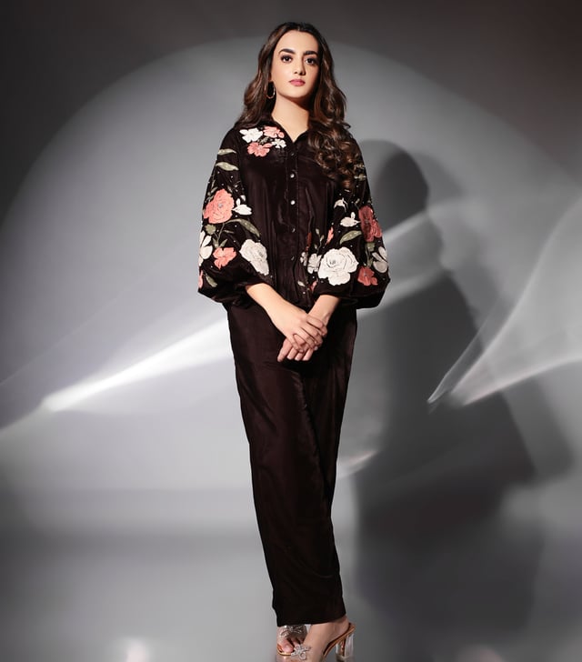 Gulab & Stonework Mocha Bloom Co-Ord Set