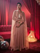 Rose Gold Shimmer Pleated Cape Maxi Gown