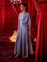 Blue Grey Crushed Satin Plunging Neck Wide-Leg Jumpsuit