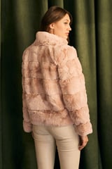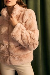Pink Fur-Textured Cropped Jacket with High Neck