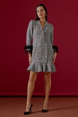 Monochrome Metallic Tweed Blazer Mini Dress