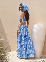 Cobalt Blue Graphic Print Halter Co-ord Set with Wide-Leg Pants