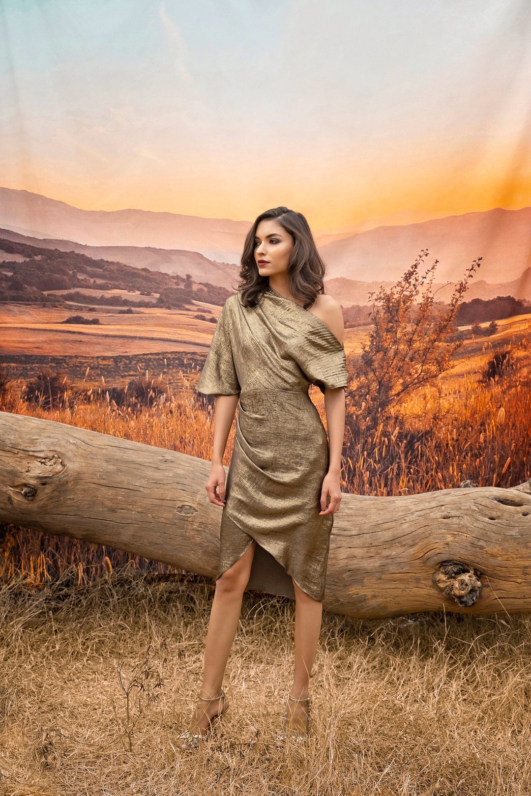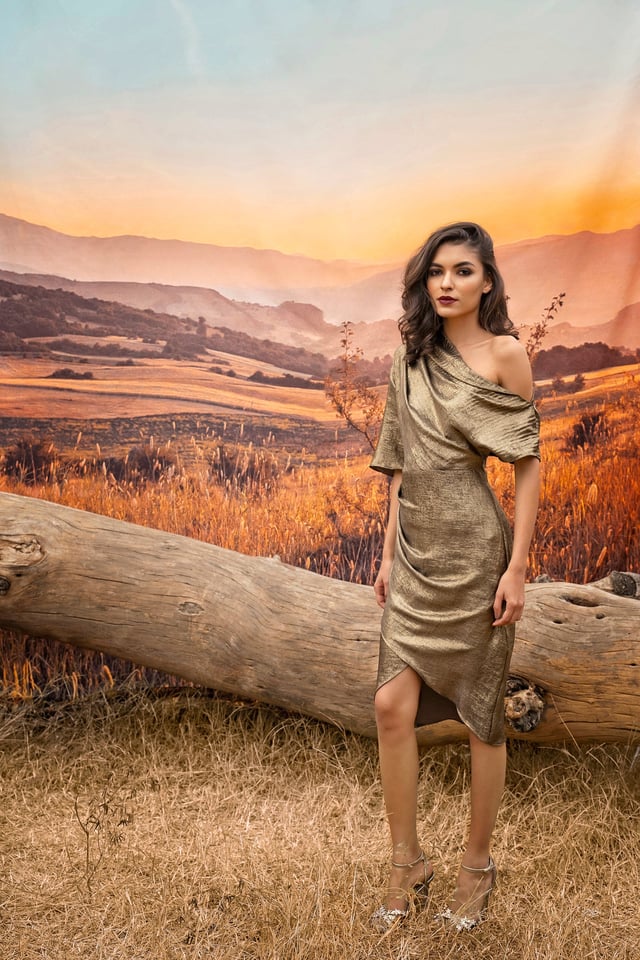 Gold Shawl Collar Dress