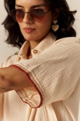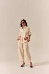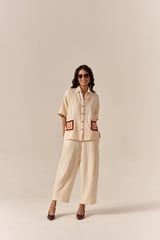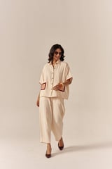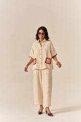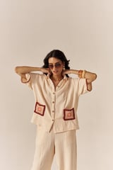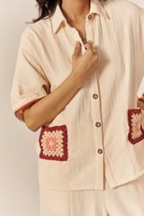 Peach Crochet Pocket Shirt and Pants Co-ord Set