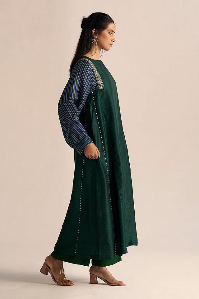 Dark Green And True Blue Silk Co-Ord Set