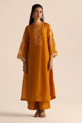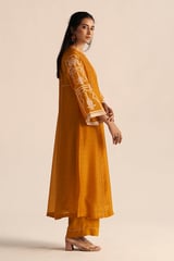 Nugget Yellow Silk Kurta and Wide-Leg Pants Co-ord Set
