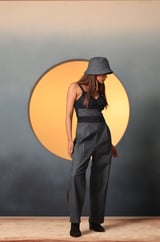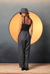 Blue Denim Corset-Bodice Jumpsuit with Pleated Trousers