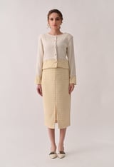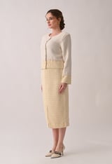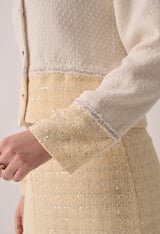White Tweed Cropped Jacket with Contrast Hem