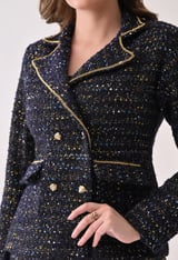 Blue Tweed Blazer and Pencil Skirt Co-ord Set